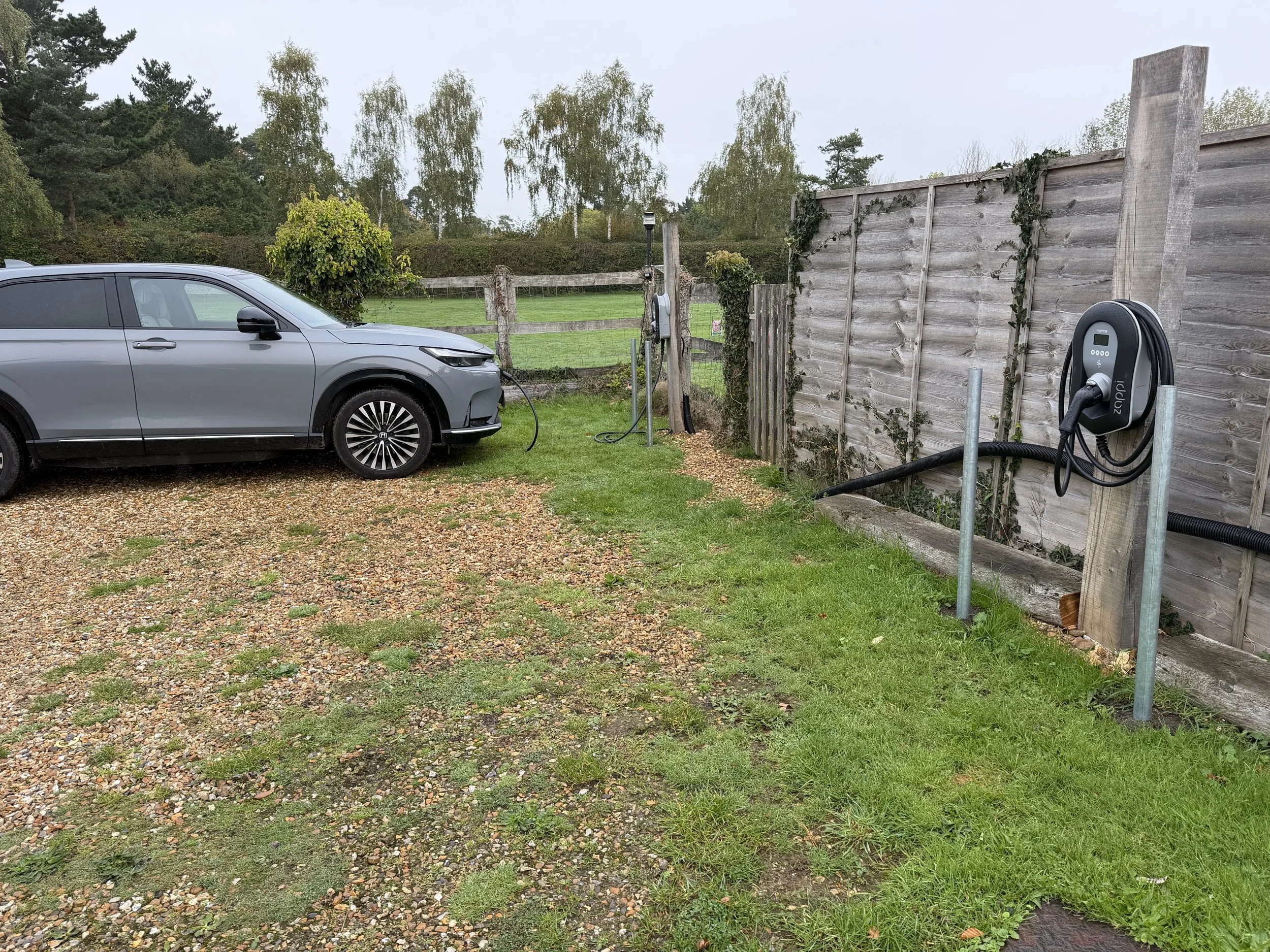 We now offer two charging facilities for campers with electric vehicles. This is done in the parking area of our cottage which is immediately next to the campsite. Charging is not allowed at the electric hook-up points on the individual pitches. You will need to arrange charging through either Bill or Helen and you will need to pay in cash after the charging and at a cost of 50p for kw/h.